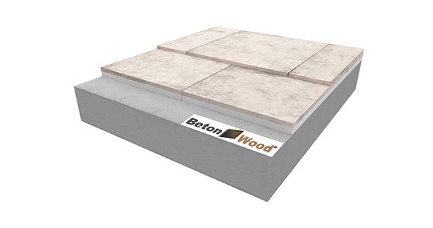 Sistema per pavimento caratterizzato da pannelli accoppiati in polistirene espanso e legnocemento tipo BetonWood tassellati BetonStyr EPS, autolivellante e pavimento.![]()